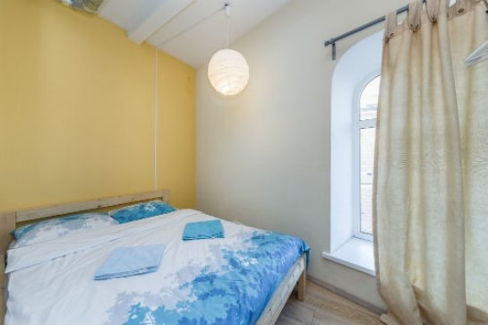 Очень уютный номер с шикарным видом на Площадь Восстания и весь Невский проспект. В номере установлена двуспальная кровать из натурального дерева. Также есть гардероб открытого типа и тумбочка.